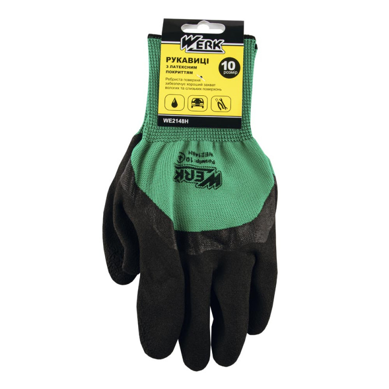 (WE2148H) Рукавички ПЕ зелені, з чорним латексним покриттям WERK з підв.