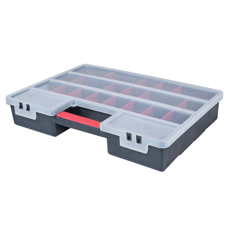 Страна-производитель товара: Польша. Материал корпуса: пластик. Размеры без подставки: 460 x 325 x 80 мм. Тип биты: органайзер. Дополнительно: 21 внутренних передвижных перегородок. Матерал замков: пластик. Количество отделений: 26.