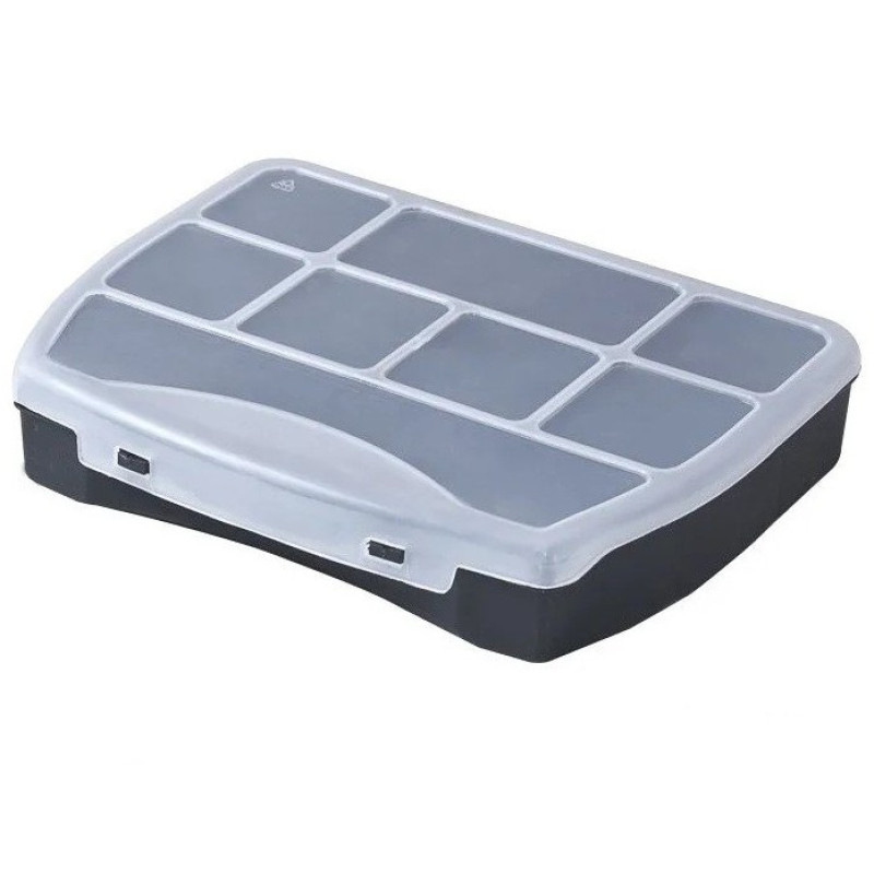 Органайзер с фиксированными секциями Domino 19 Haisser 190*155*37 мм Органайзер с фиксированными секциями Domino 19 Haisser 190*155*37 мм выполнен из качественного пластика и состоит из 8 отсеков. Можно использовать для хранения мелкого инструмента, полезных вещей, хоз.инвентаря.