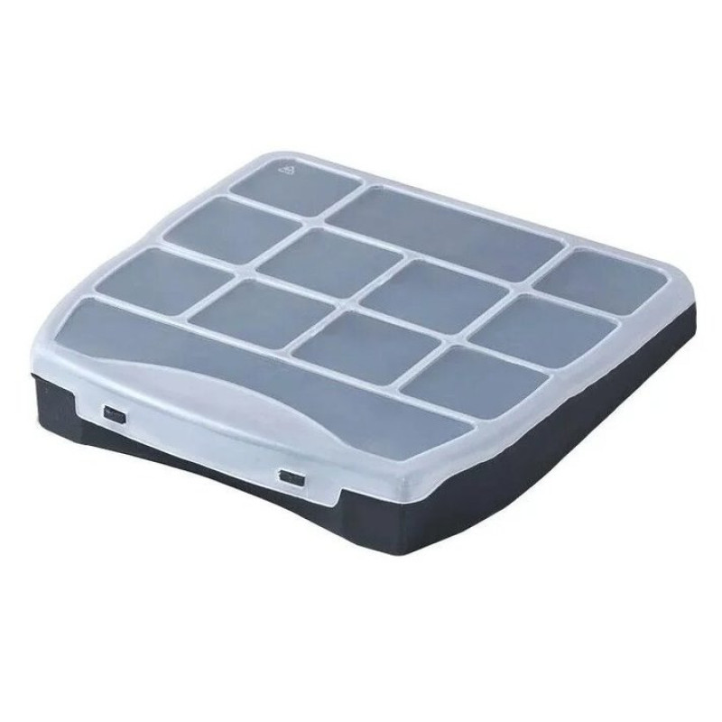 Органайзер с фиксированными секциями Domino 25 Haisser 250*200*44 мм Органайзер с фиксированными секциями Domino 25 Haisser 250*200*44 мм выполнен из качественного пластика и состоит из 12 отсеков. Можно использовать для хранения инструмента, полезных вещей, хоз.инвентаря.