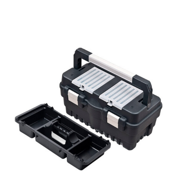Ящик для инструментов с лотком и металлическими замками 18.5" Haisser Ящик для инструментов с лотком и металлическими замками 18.5" Haisser - используется для удобного хранения и переноски мелкого инструмента, хозяйственного инвентаря. Ящик выполнен из прочного, высококачественного, противоударного пластика с надежной транспортировочной ручкой и металлическим замком. Размер 46.2х25,6х24,2 см.