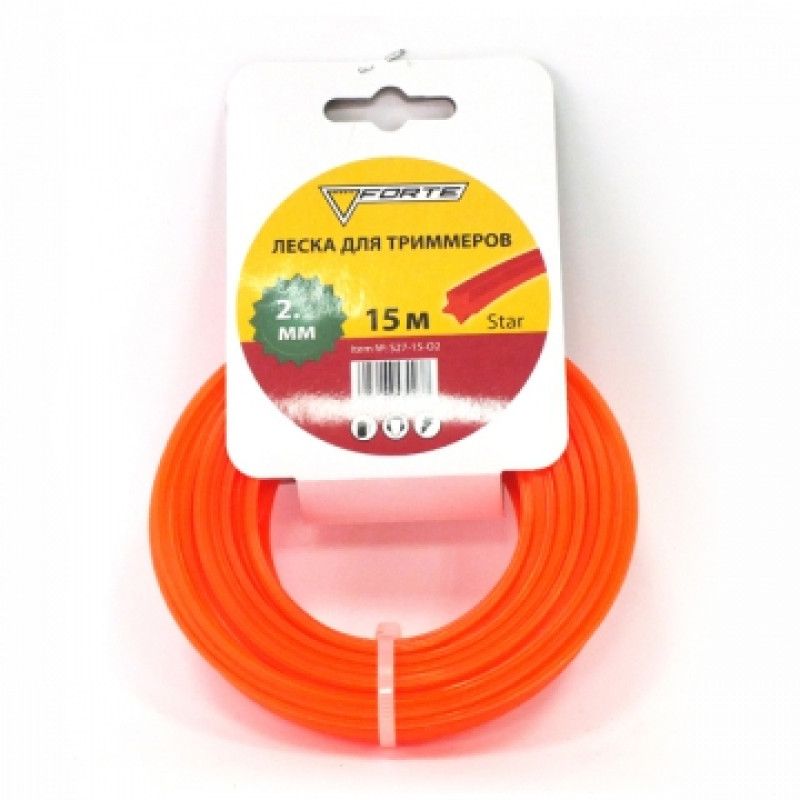 Forte 2 мм х 15 м Леска для мотокос звезда Сечение имеет форму звезды. Такие острые грани хорошо улучшают аэродинамику и способствуют хорошему качеству кошения.