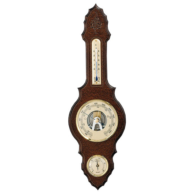 Настенная метеостанция Moller 203023 Walnut состоит из барометра с большим открытым циферблатом, гигрометра и термометра, объединенных в деревянном корпусе. Вся продукция Moller производится из твердых пород дерева, а именно из бука, поверхность шлифуется, после чего корпус покрывается специальными составами лака для придания необходимой долговечности, цвета и текстуры древесины грецкого ореха. Барометры Moller адаптированы для нашего рынка и имеют шкалу не только в гектопаскалях, но и в миллиметрах ртутного столба. Качество и надежность продукции Moller подкреплены пятилетней гарантией.