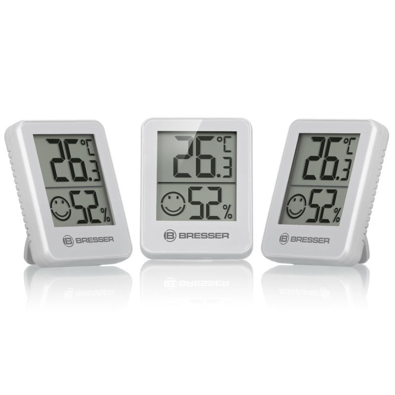 Термометр-гигрометр Bresser Temeo Hygro indicator поставляется в комплекте из 3 штук, каждый из которых отображает температуру, относительную влажность и уровень комфорта в помещении. Отличительные особенности - индикатор уровня комфорта.