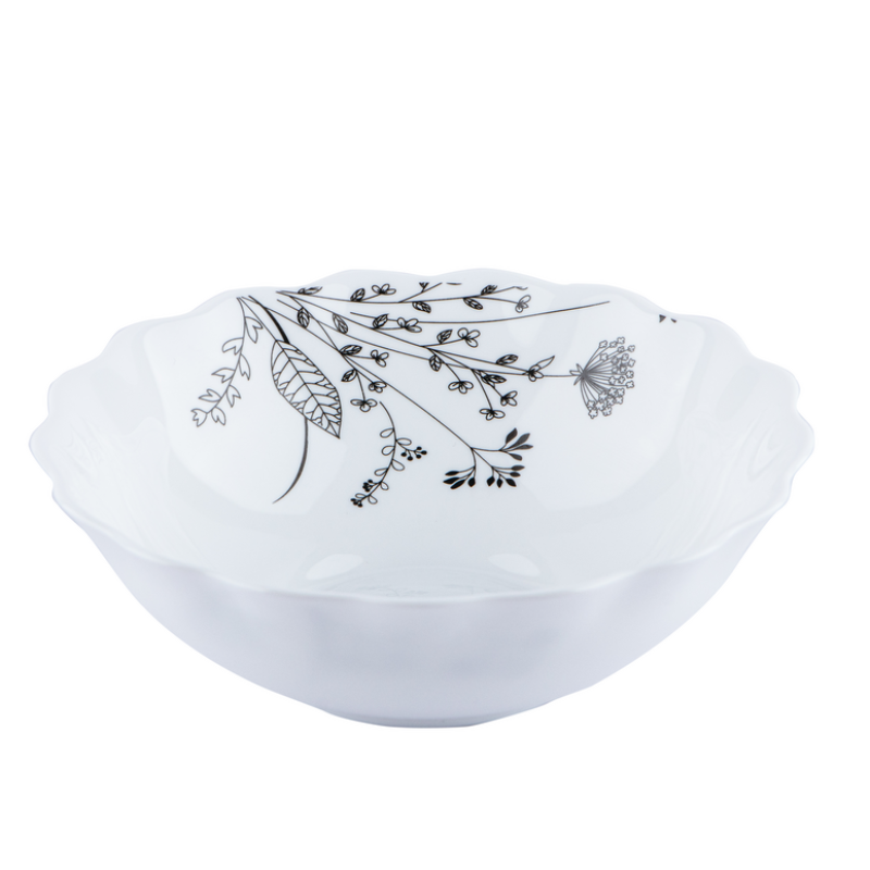 Тарелка десертная V-190BW Черно-белое соцветие Wave Vittora 190 мм Тарелка десертная V-190BW Черно-белое соцветие Wave Vittora 190 мм - выполнена из стеклокерамики, самый популярный, легкий и прочный материал, на котором не остается следов от пользования вилкой или ножом. В стеклокерамической посуде можно хранить любые готовые блюда и использовать в микроволновой печи. Он не вступает в химические реакции с пищевыми продуктами и абсолютно безопасен для здоровья.