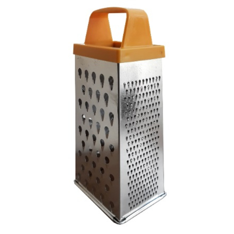 Терка классическая с пластиковой ручкой GT-Т-1 Gusto Терка классическая GT-Т-1 Gusto - качественная модель с пластиковой ручкой. Терка имеет 4 режущие поверхности: широкая грань с круглыми резцами 8 мм, узкая грань с круглыми резцами 2 мм, узкая грань с 3 прямоугольными резцами , широкая грань с резцами 4 мм. Выполнена из пищевой жести, подходит для всех продуктов и не окисляет их.