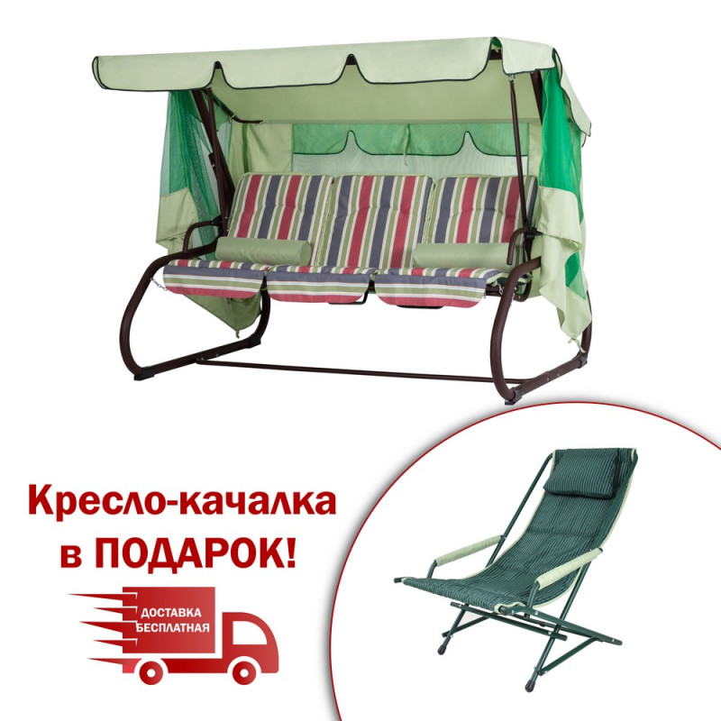 Главная задача и функция садовых качелей – это создание уютного уголка для отдыха на природе. Садовые качели от ТМ Витан под названием «СИЕСТА» новинка 2018 года. Одна из особенностей данной модели – новая конструкция сиденья, которая позволяет в считанные секунды и без усилий откинуть спинку сиденья и наслаждаться отдыхом лёжа. Так же просто можно вернуть положение спинки в режим «сиденья». Каркас данной модели выполнен из металлических труб нескольких диаметров, основным из которых является труба диаметром 51мм. Весь металлический каркас покрыт особым текстурным полимерным покрытием, для стойкости от коррозии, а также для стильности внешнего вида. Данная конструкция — качели «Сиеста» полностью разбирается на отдельные детали, что очень удобно для хранения и транспортировки. Для сборки есть детальная инструкция, где схематически объясняется, как собрать, или разобрать качели. Тент крыши из специальной влагостойкой материи, сиденье изготовлено из пружинного блока и стальной проволоки. На сиденье мягкий матрас из ткани с поролоном и синтепоном внутри. На качели могут разместиться 4-ро взрослых человек, а если с маленькими детками то и все 6-ро! Максимально-допустимая нагрузка до 300кг. Широкое сиденье размером 1710х535мм позволит удобно расположиться на качели и насладиться отдыхом. А чтоб ничего не мешало Вашему отдыху, в качелях «Сиеста» предусмотрен тент с москитной сеткой. Мы убеждены, что продукция от ТМ Витан вызывает только положительные эмоции. Качество и надежность от украинского производителя Вам гарантированны.