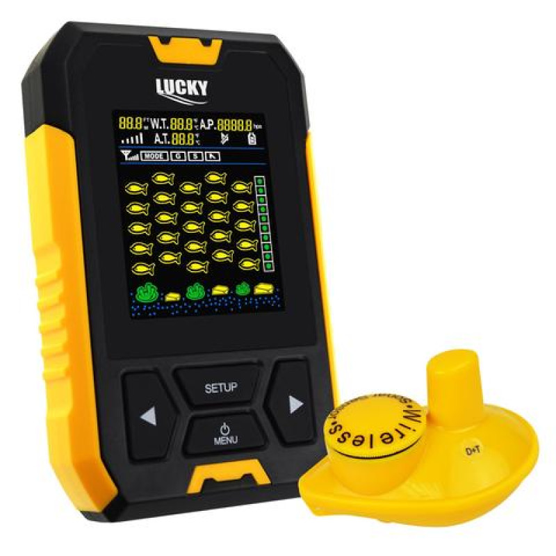 Беспроводной эхолот Lucky FL218TPA-WT цветной дисплейГлубина0,7-100 м (кабель)0.7-45m (беспроводной)Существует две модели: беспроводной и проводнойЧастота преобразователя: 45 градусов в 200 кГц (кабель)и 90 градусов в 125 кГц (беспроводной)Размеры монитора и пиксели: 3 дюйма, CSTN дисплейРабочая температура: от -10 ° C до 50 ° C Время работы: монитор 8 ч, беспроводной датчик 5 чДиапазон давления воздуха: от 300 до 1100 гПа, точность 0.1hPaТребования к питанию: 4 x AAA3-вольтовая батарея (беспроводной датчик)Рабочее время: 5 часовОбласть применения: плотовая рыбалка, рыбалка с лодки, ледрыбалка, каяк рыбалка