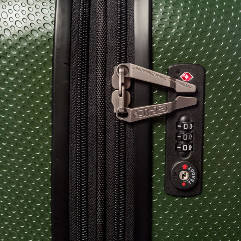 - TSA LOCK™ by TRAVEL SENTRY® - чемодан оборудован специальным кодовым замком с функцией таможенного досмотра TSA LOCK™. Не смотря на то, что современные технологии позволяют таможенным службам аэропортов проводить досмотр чемоданов с помощью специальных сканеров, иногда возникает необходимость вскрыть чемодан для более детальной проверки. Администрация транспортной безопасности США (Transportation Security Administration) совместно с компанией Travel Sentry разработала кодовые замки, которые могут быть открыты только специальными ключами, за которые сотрудники безопасности аэропортов несут персональную ответственность. Таким образом, при физическом досмотре и вскрытии багажа, замки и молнии останутся целы, и секретный код замка также будет сохранен. Сегодня множество служб безопасности аэропортов по всему миру одобрили и используют ключи системы TSA LOCK™ для досмотра багажа. Полный список стран и производителей багажа, официально использующих замки TSA LOCK™ можно посмотреть на сайте производителя Travel Sentry. Чемоданы EPIC, отмеченные логотипом Travel Sentry, оснащены замками системы TSA LOCK™ и соответствуют стандартам глобальной безопасности путешествий.