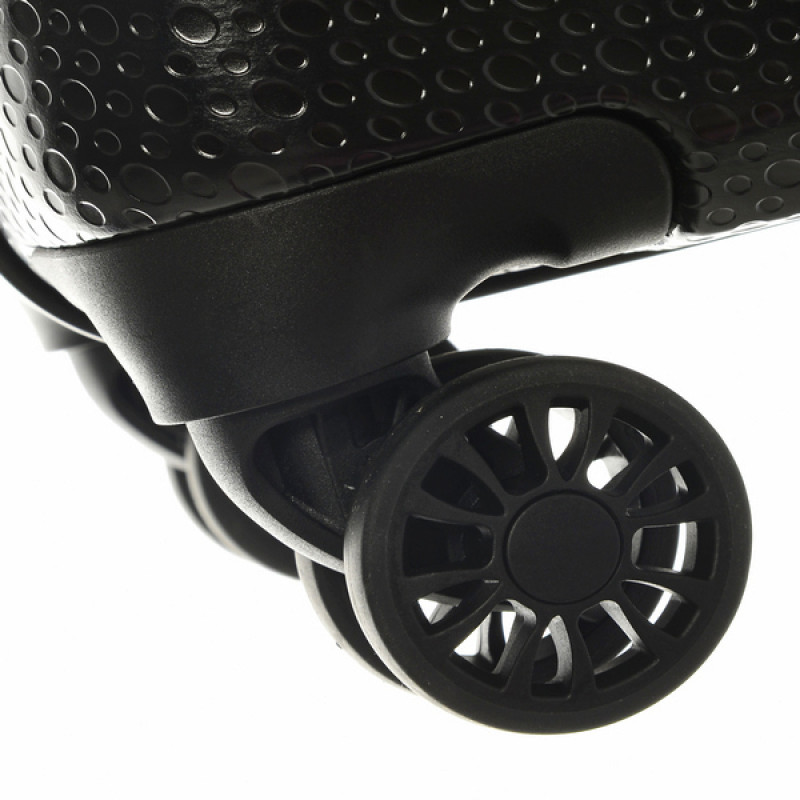 - DUALTRAK™ WHEELS - для более уверенного сцепления и лучшей маневренности на всех поверхностях, данная модель оснащена четырьмя сдвоенными колесами увеличенного диаметра, вращающимися на 360° независимо друг от друга. Двухкомпонентные колеса DUALTrak™ состоят из прочной и облегченной основы со спицами, облаченной в полиуретановую "шину", отличающуюся износостойкостью и низким уровнем шума при движении. Для максимальной маневренности и плавности хода каждая из двух перпендикулярных осей вращения оборудована подшипником. Кроме того, эти колеса имеют более низкий центр тяжести, чем большинство других, что позитивно сказывается на устойчивости чемодана, в том числе и во время движения.