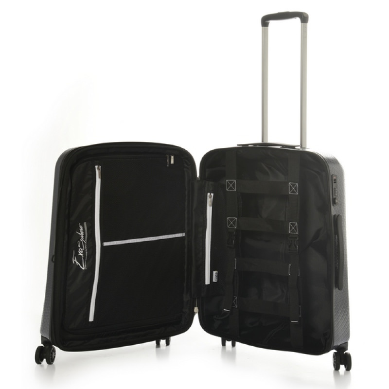 • G-FORCE™ INTERIOR - идея создания интерьера с повышенной функциональностью позаимствована компанией EPIC® из автогонок. Многоточечная система крепления ремней, надежно защищающая автогонщиков во время повышенных нагрузок, отлично зарекомендовала себя и в интерьере чемоданов. Ремни выполнены из легкого и прочного полиамида. Не увеличивая общий вес чемодана, они наиболее оптимально выполняют компрессионную функцию, помогая упаковать и надежно удерживать большее количество вещей. Также интерьер дополнен разделительной заслонкой на молнии и двумя застегивающимися карманами разного объема.