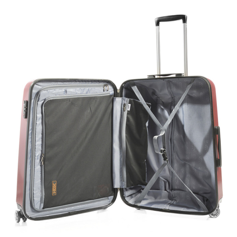 - Материал: HexaCORE™ Bayer® Makrolon® (Polycarbonate) - наиболее прочный и эластичный материал для производства корпусов чемоданов. Устойчив к ударным нагрузкам, после деформации возвращает прежнюю форму. Имеет внешнюю структуру HexaCORE™.