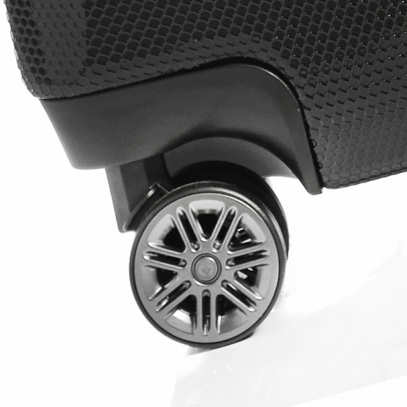 - DUALTRAK™ WHEELS - для более уверенного сцепления и лучшей маневренности на всех поверхностях, данная модель оснащена четырьмя сдвоенными колесами увеличенного диаметра, вращающимися на 360° независимо друг от друга. Двухкомпонентные колеса DUALTrak™ состоят из прочной и облегченной основы со спицами, облаченной в полиуретановую "шину", отличающуюся износостойкостью и низким уровнем шума при движении. Для максимальной маневренности и плавности хода каждая из двух перпендикулярных осей вращения оборудована подшипником. Кроме того, эти колеса имеют более низкий центр тяжести, чем большинство других, что позитивно сказывается на устойчивости чемодана, в том числе и во время движения.