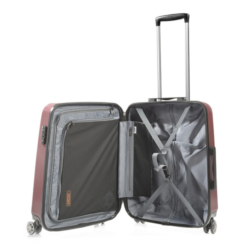 - Материал: HexaCORE™ Bayer® Makrolon® (Polycarbonate) - наиболее прочный и эластичный материал для производства корпусов чемоданов. Устойчив к ударным нагрузкам, после деформации возвращает прежнюю форму. Имеет внешнюю структуру HexaCORE™.