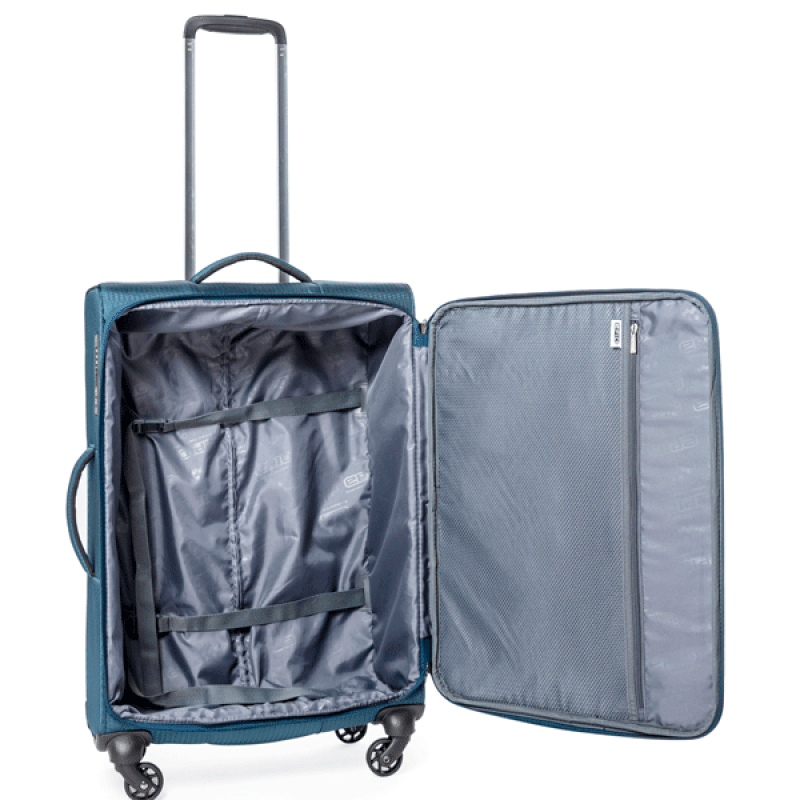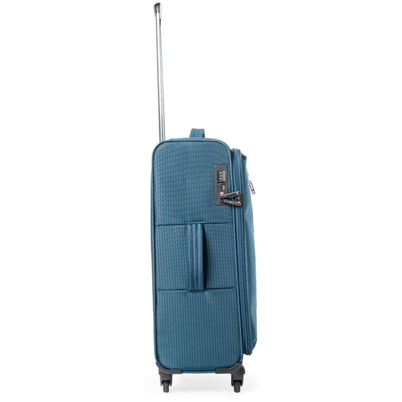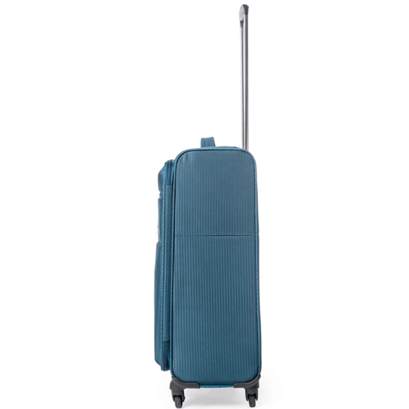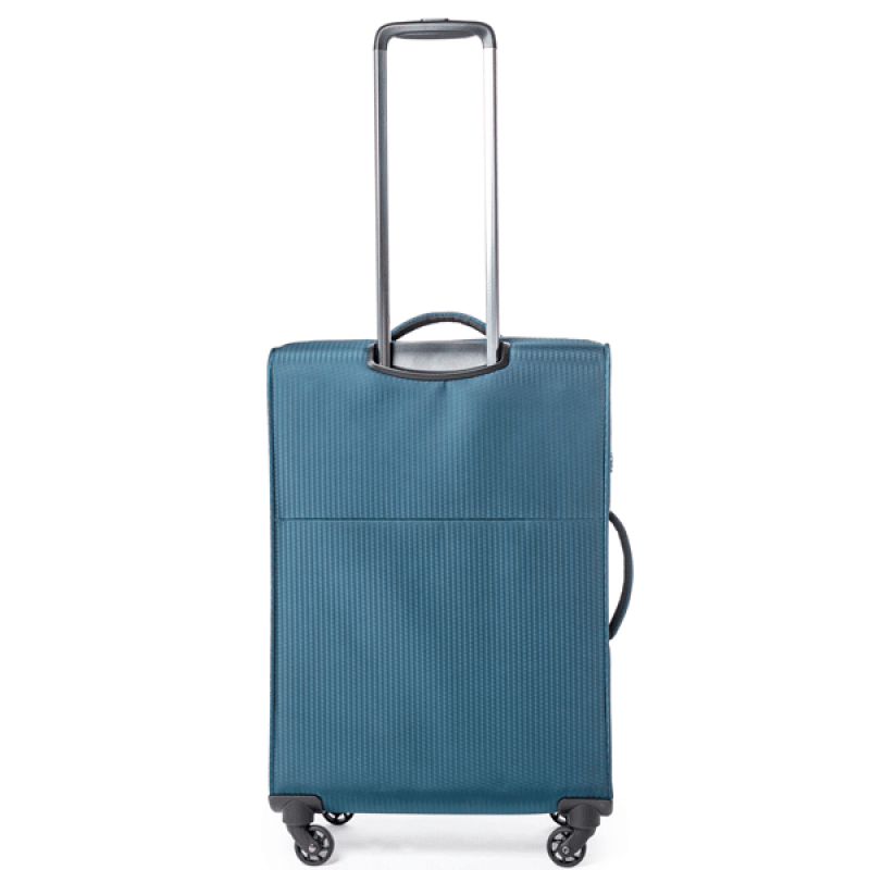 • SOFT SHELL POLYESTER 500D - ткань из полиэстера с толщиной нити 500D, имеющая объемный крупный узор, создающий внешнюю игру света, и с внутреннее полиуретановое покрытие, защищающее содержимое чемодана от намокания во время дождя средней интенсивности. Также ткань обладает хорошей износостойкостью, и не разрушается под действием ультрафиолетового излучения.