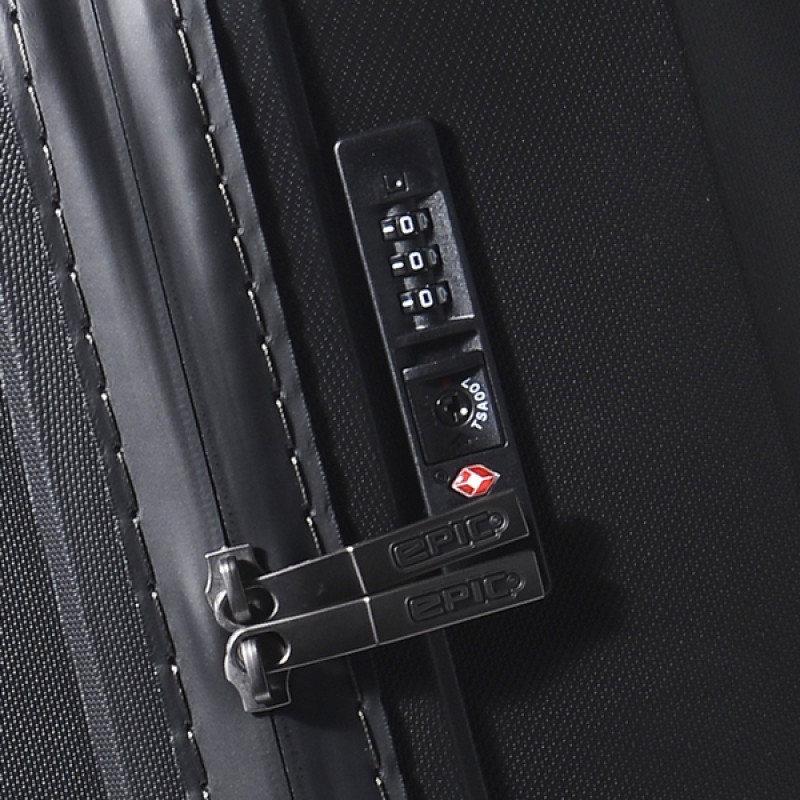 - TSA LOCK™ by TRAVEL SENTRY® - чемодан оборудован специальным кодовым замком с функцией таможенного досмотра TSA LOCK™. Не смотря на то, что современные технологии позволяют таможенным службам аэропортов проводить досмотр чемоданов с помощью специальных сканеров, иногда возникает необходимость вскрыть чемодан для более детальной проверки. Администрация транспортной безопасности США (Transportation Security Administration) совместно с компанией Travel Sentry разработала кодовые замки, которые могут быть открыты только специальными ключами, за которые сотрудники безопасности аэропортов несут персональную ответственность. Таким образом, при физическом досмотре и вскрытии багажа, замки и молнии останутся целы, и секретный код замка также будет сохранен. Сегодня множество служб безопасности аэропортов по всему миру одобрили и используют ключи системы TSA LOCK™ для досмотра багажа. Полный список стран и производителей багажа, официально использующих замки TSA LOCK™ можно посмотреть на сайте производителя Travel Sentry. Чемоданы EPIC, отмеченные логотипом Travel Sentry, оснащены замками системы TSA LOCK™ и соответствуют стандартам глобальной безопасности путешествий.