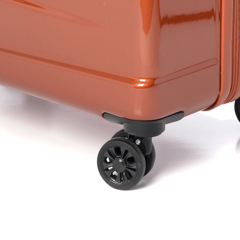 - DUALTRAK™ WHEELS - для более уверенного сцепления и лучшей маневренности на всех поверхностях, данная модель оснащена четырьмя сдвоенными колесами увеличенного диаметра, вращающимися на 360° независимо друг от друга. Двухкомпонентные колеса DUALTrak™ состоят из прочной и облегченной основы со спицами, облаченной в полиуретановую "шину", отличающуюся износостойкостью и низким уровнем шума при движении. Для максимальной маневренности и плавности хода каждая из двух перпендикулярных осей вращения оборудована подшипником. Кроме того, эти колеса имеют более низкий центр тяжести, чем большинство других, что позитивно сказывается на устойчивости чемодана, в том числе и во время движения.