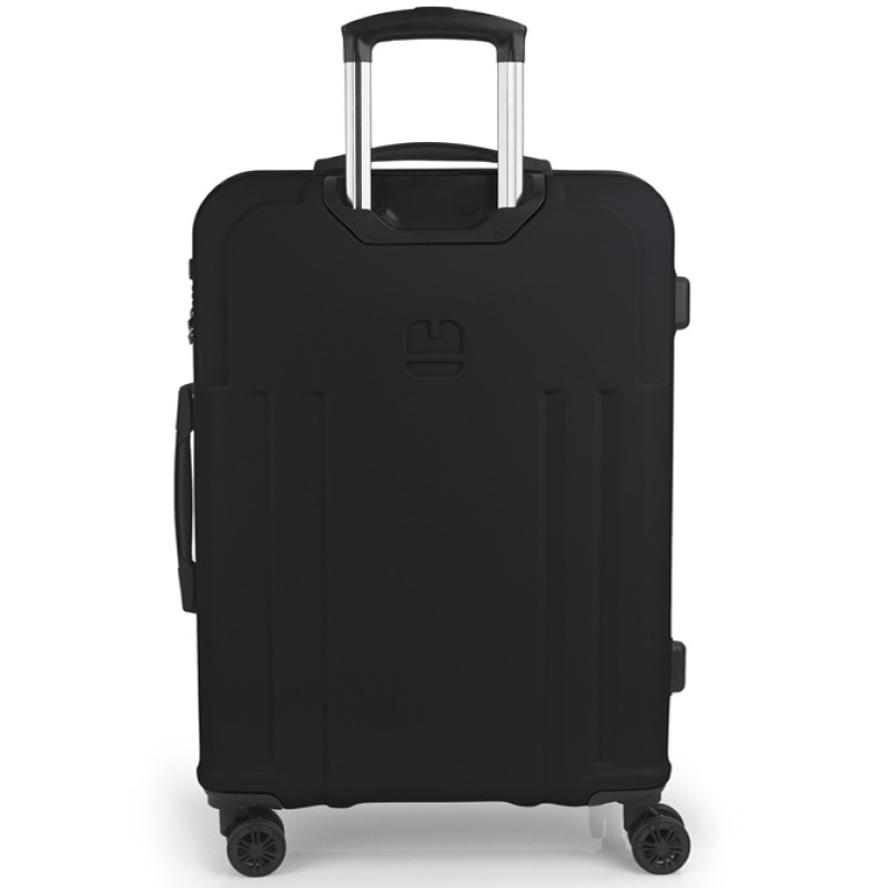 Чемодан оснащен четырьмя полноповоротными колесами с возможностью независимого разворота каждого колеса на 360 °. Системой предусмотрено равномерное перераспределения нагрузки на каждое колесо, что в свою очередь способствует плавному качению и маневренности чемодана, прилагая при этом минимум усилий. Колеса изготовлены из высокотемпературного термопластичного полиуретана (TPU). Материал обладает прочностью сравнимой с пластиком, гибкостью силикона, а так же имеет повышенную устойчивость к перепадам температур. Отличительной особенностью колес из TPU материала является снижение шума до минимума при качении чемодана по неровной поверхности. Благодаря устойчивости к истиранию материал колес отличается длительным сроком эксплуатации.
