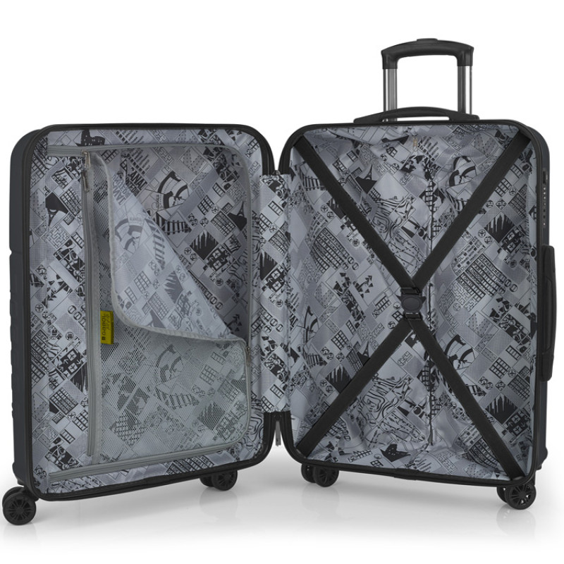 Коллекция чемоданов Gabol Ego выполнена из прочного и долговечного материала - ABS-пластика, что очень важно для чемоданов, перевозимых в багажных отделениях. Внутренний объем разделен перегородкой на два отделения и имеет ремни для фиксации вещей внутри.