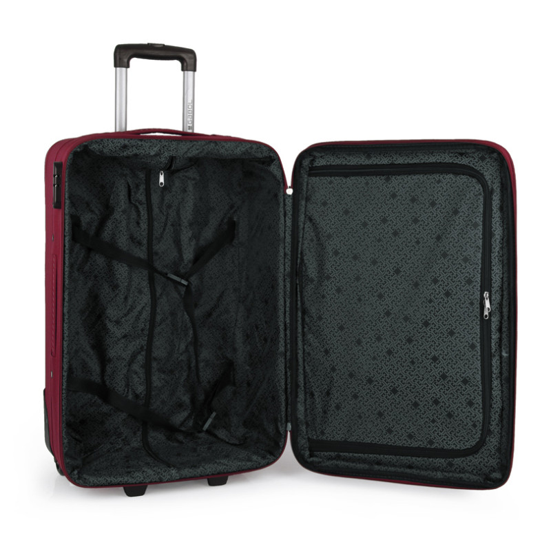 Предусмотрена возможность увеличить полезный объем чемодана до 20%, благодаря наличию клапана, расстегнув специальную молнию по периферии чемодана.