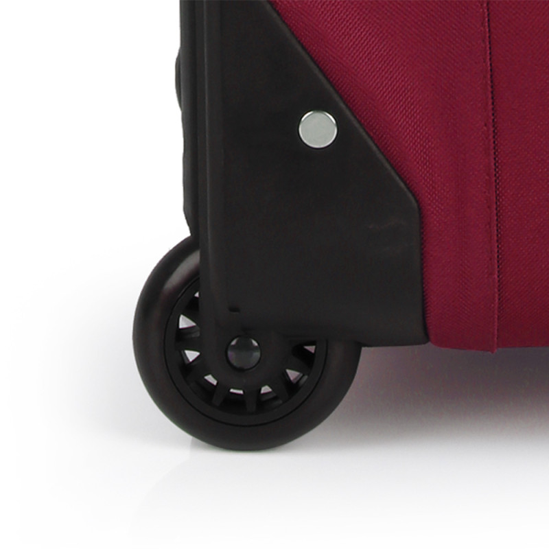 Чемодан оснащен парой недежных колес из высокотемпературного термопластичного полиуретана (TPU). Материал обладает прочностью сравнимой с пластиком, гибкостью силикона, а так же имеет повышенную устойчивость к перепадам температур. Отличительной особенностью колес из TPU материала является снижение шума до минимума при качении чемодана по неровной поверхности. Благодаря устойчивости к истиранию материал колес отличается длительным сроком эксплуатации.