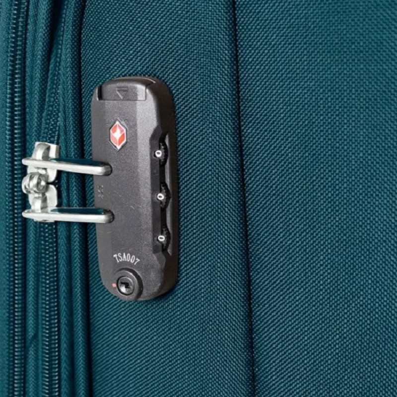 Чемодан оборудован фирменным кодовым замком с функцией таможенного досмотра TSA (Transportation Security Administration - Администрация по безопасности на транспорте). Таможенные службы совместно с Американской Ассоциацией по безопасности на транспорте (Transportation Security Administration или, сокращенно, TSA) получили абсолютное право, в целях безопасности, досматривать любой чемодан на колесах или сумку, показавшуюся им подозрительной. Агенты по безопасности на транспорте снабжены специальными TSA ключами, за которые они несут персональную ответственность. Благодаря наличию в замке функции TSA после досмотра ваши замки останутся целыми и невредимыми в отличии от багажа без функции TSA.