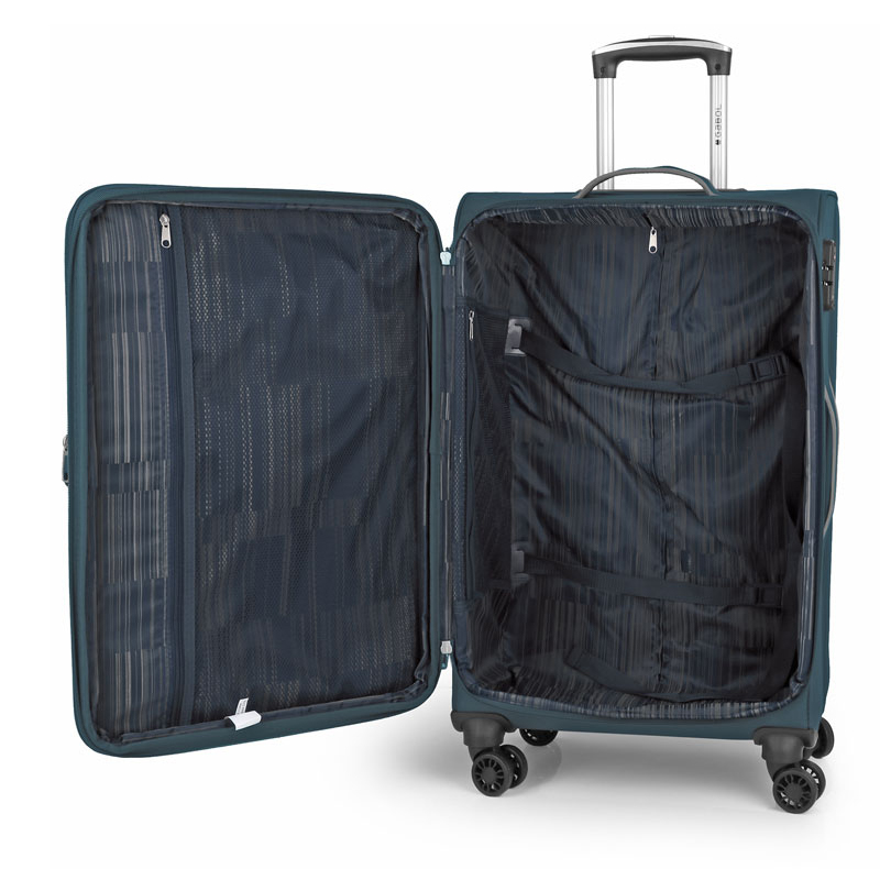 Чемодан Gabol серии Zambia оснащен кодовым замком системы TSA для повышения безопасности. Каркас дна легкий и прочный благодаря сотовой структуре строения. На фасадной части размещены вместительный карман на молнии. Внутренний объем имеет ремни для фиксации вещей внутри. Чемодан легкий, маневренный и удобный для транспортировки.