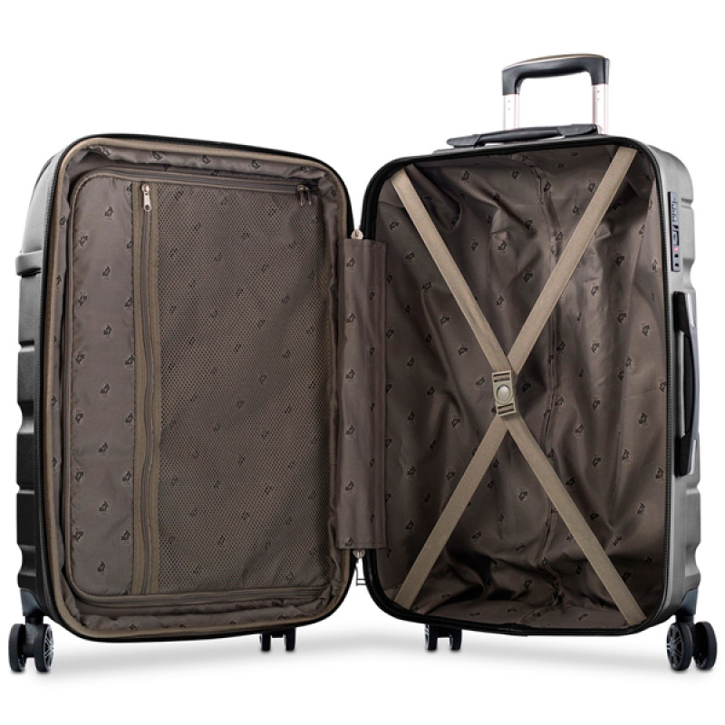 Чемодан оснащен четырьмя полноповоротными колесами системы Spinner с возможностью независимого разворота каждого колеса на 360 °. Системой предусмотрено равномерное перераспределение нагрузки на каждое колесо, что в свою очередь способствует плавному качению и маневренности чемодана, прилагая при этом минимум усилий.