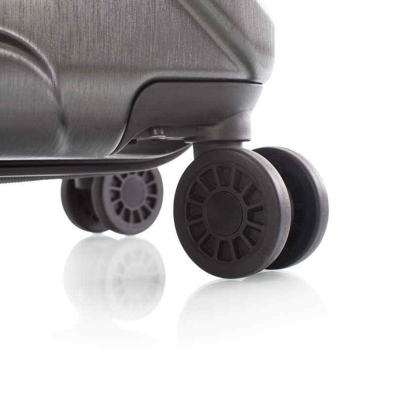 Чемодан оснащен четырьмя полноповоротными колесами системы Spinner с возможностью независимого разворота каждого колеса на 360°. Системой предусмотрено равномерное перераспределение нагрузки на каждое колесо, что в свою очередь способствует плавному качению и маневренности чемодана, прилагая при этом минимум усилий.