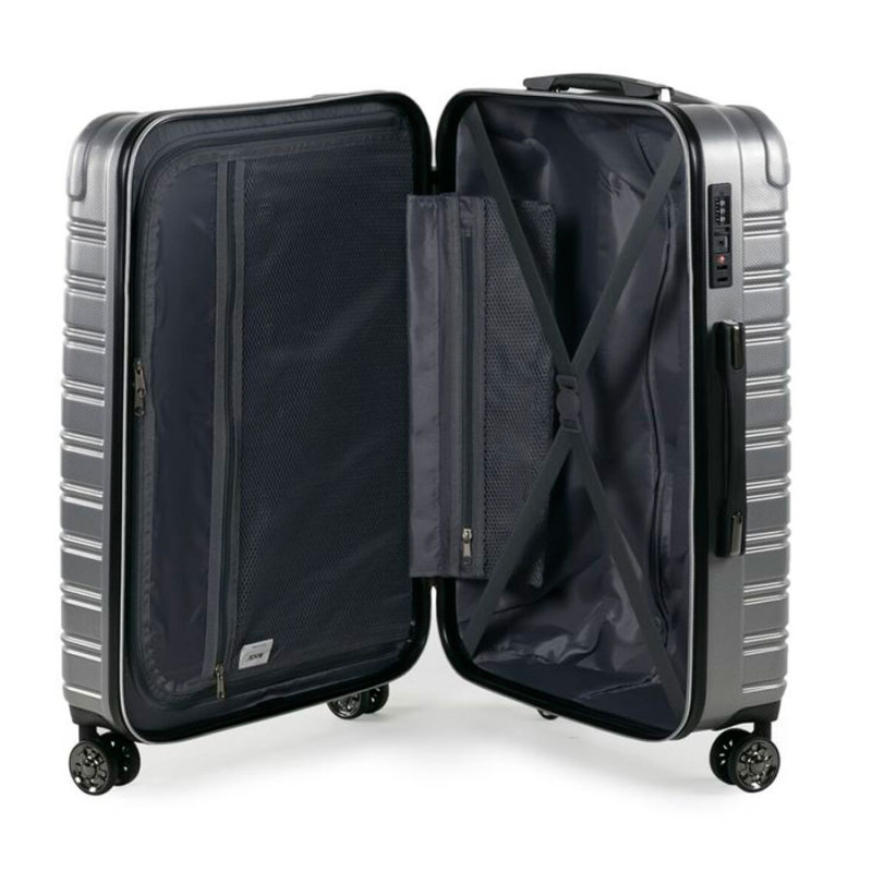 - Чемодан разделен перегородкой на молнии на два основных отделения, перегородка имеет сетчатый карман на молнии