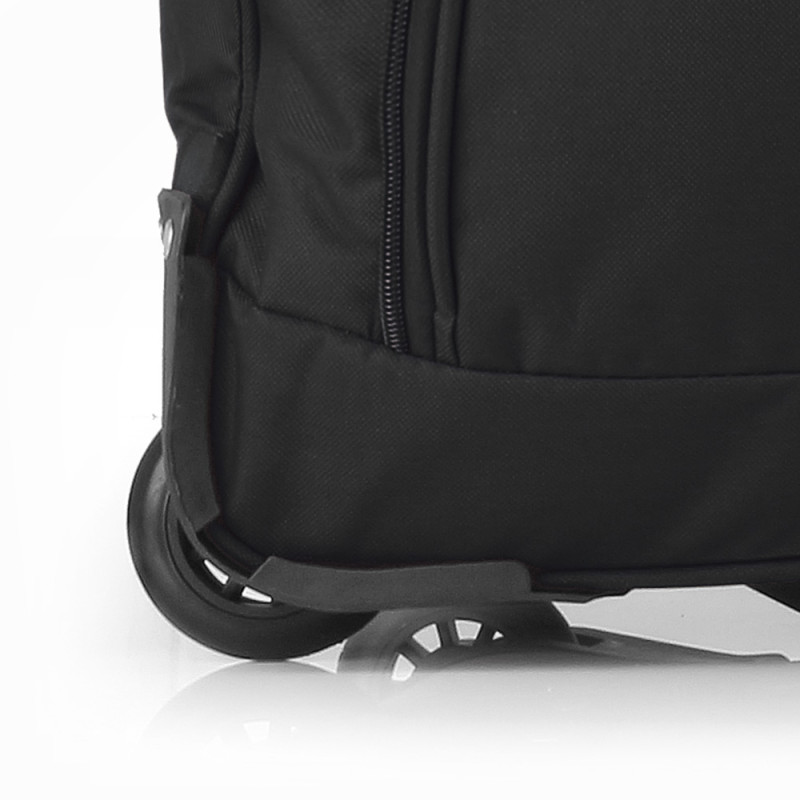 Сумка оснащена парой надежных роликовых колес. Колеса изготовлены из высокотемпературного термопластичного полиуретана (TPU). Материал обладает прочностью сравнимой с пластиком, гибкостью силикона, а так же имеет повышенную устойчивость к перепадам температур. Отличительной особенностью колес из TPU материала является снижение шума до минимума при качении чемодана по неровной поверхности. Благодаря устойчивости к истиранию материал колес отличается длительным сроком эксплуатации. Эргономичная система выдвижной телескопической ручки позволяет отрегулировать высоту ручки для дополнительного удобства и комфорта пользователя.