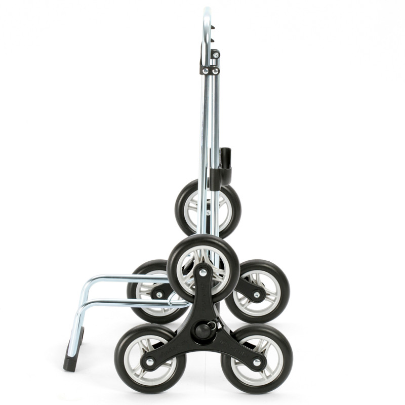 - Стальная тележка Treppensteiger Scala оснащена шестиколесной системой с колесами диаметром 13 см и обладает грузоподъемностью 40 кг. Благодаря простой системе крепления, колеса можно легко снять и помыть. Все, что Вам нужно сделать, это нажать на металлический фиксатор на колесе. Колеса подходят для легкого преодоления ступенек.