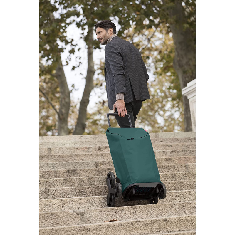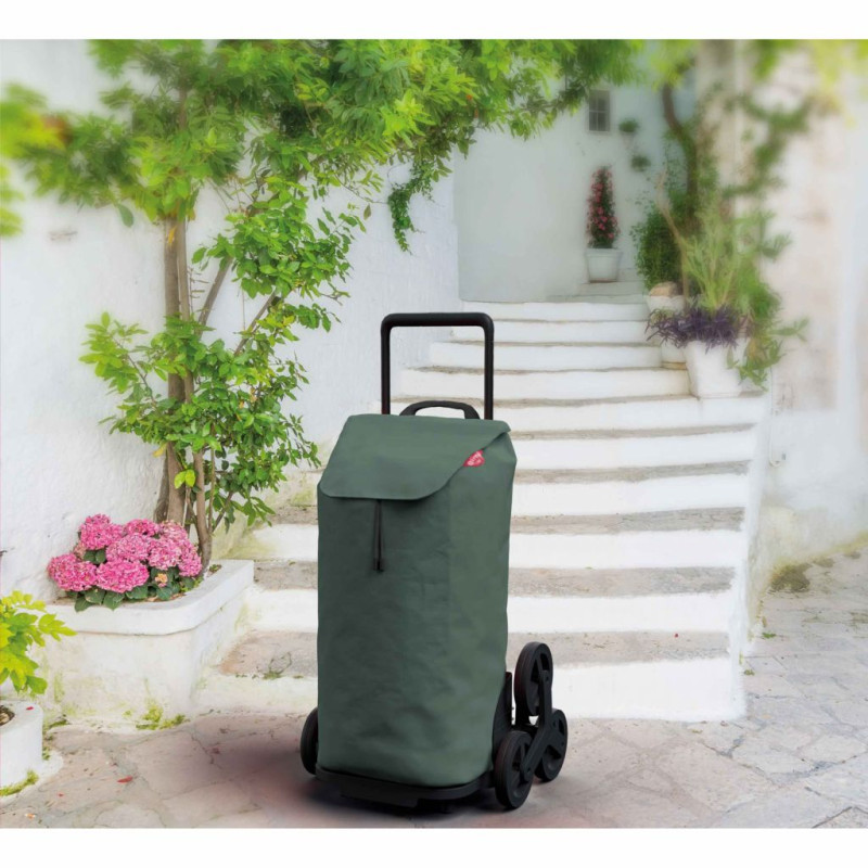 Обновленная модель сумки-тележки Gimi Tris . Шасси сумки-тележки оснащено двумя блоками по 3 колеса, которые позволяют быстро преодолевать ступеньки, бордюры тротуаров и другие препятствия при движении вверх или вниз. Сумка Gimi Tris расчитана на объем в 52 литра. Материал с водозащитным покрытием, на тыльной стороне расположен карман-кошелек на молнии для хранения мелких предметов. Удобная широкая горловина стягивается стяжным шнуром с фиксатором, защитный клапан.