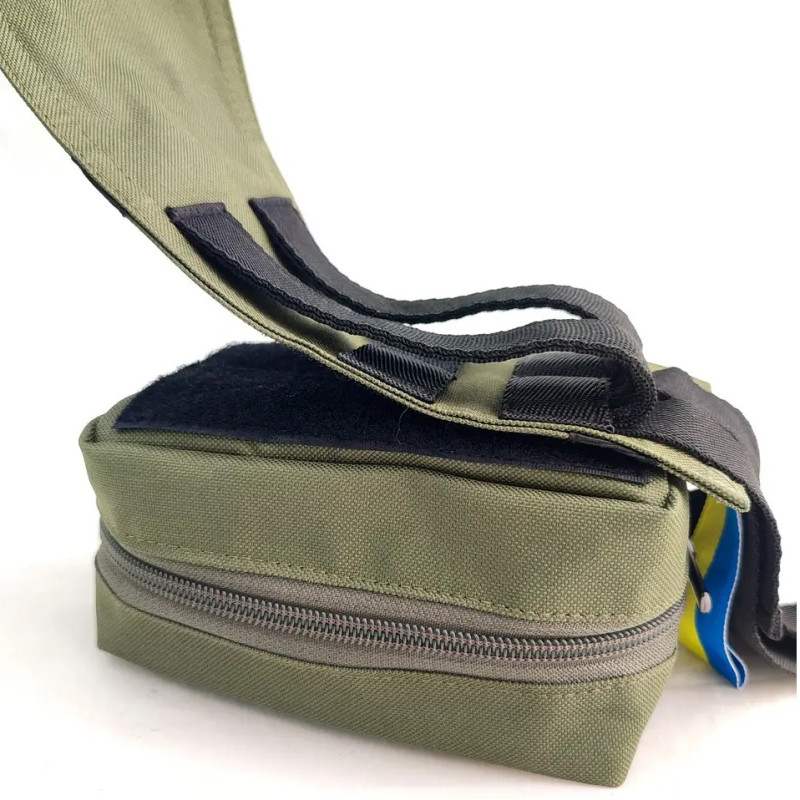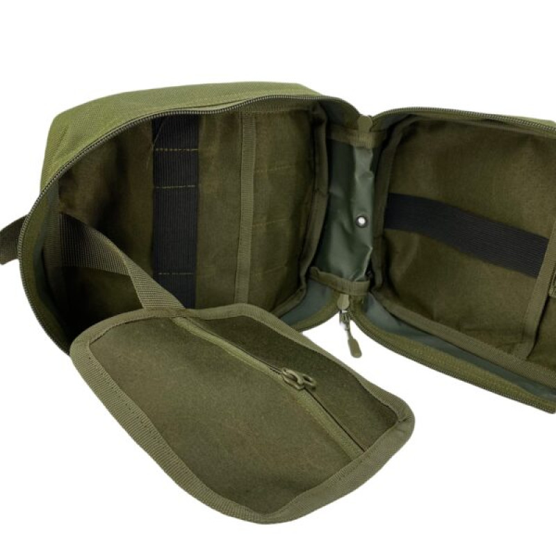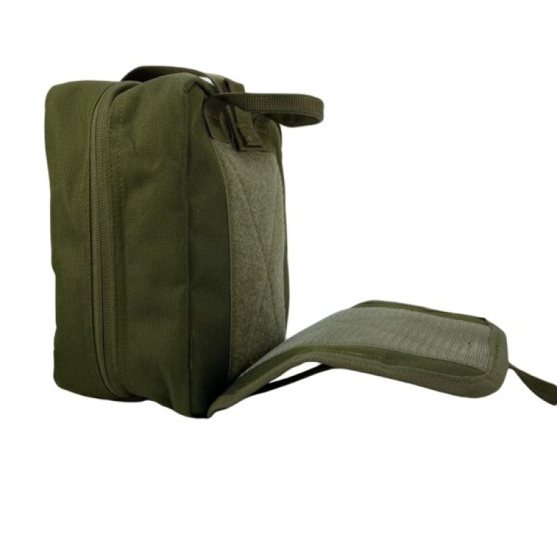 Индивидуальная тактическая аптечка изготовлена из прочной водоотталкивающей всесезонной ткани.Рассчитана на хранение и переноску медикаментов, турникетов, документов и соответствующего по размеру снаряжения.MOLLE – полиамидная ременная лента, 320 кг на разрыв, огнестойкая, обладает водоотталкивающими свойствами.Липучка класс А – более 5000 циклов открытия, использование при -30°С…+90°С, устойчивость деталей к продольно-поперечным нагрузкам.Пластиковая фурнитура – полиацетат, нагрузка 80 кг, использование при температуре -30°С…+90°С.Армированные нити не боятся перепада температур и не впитывают влагу.В местах максимальной нагрузки используется закрепка в 4 прохода или при необходимости закрепка зигзаг, что обеспечивает длительный срок службы узла и надежность при эксплуатации.Компактный и легкий результат под аптечку состоит из двух частей: итога и панели для крепления на рюкзак или другое снаряжение.Панель подсоединяется к итогу широкой надежной лентой-липучкой велкро, а к снаряжению – системой MOLLE. Для дополнительной надежности предусмотрен крепеж на ленту с фастексом.На передней стенке итога пришиты ленты для фиксации MOLLE-совместимых элементов. Результат застегивается на двустороннюю молнию на 180°.Внутри имеет 3 вместительных больших кармана, один из которых закрывается на липучку. Вшитые резинки надежно удерживают медикаменты и другие необходимые вещи.Дополнительный пришивной карман на молнии предназначен для хранения документов. Дно итога снабжено люверсом для стока воды.Итог имеет небольшую ручку для удобной вертикальной переноски и липучку для фиксации шеврона.Назначение – для хранения и переноса медикаментов, турникетов, документов и соответствующего размера снаряжения.• Вес – 280 г.• Размер – 22х21х12 см.• Цвет – олива.• Ткань – Cordura 500D