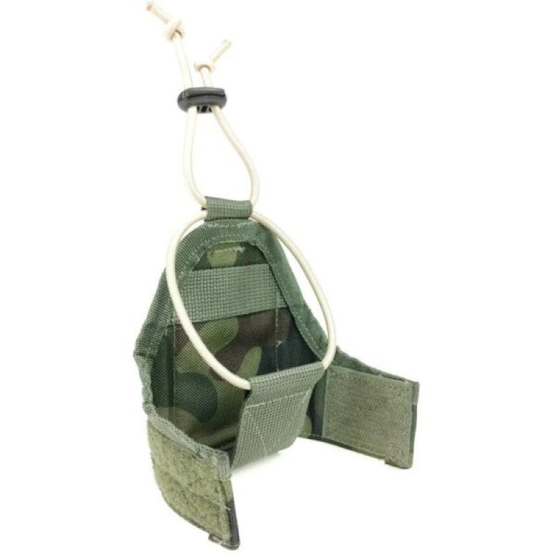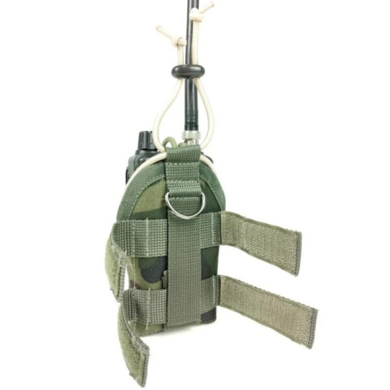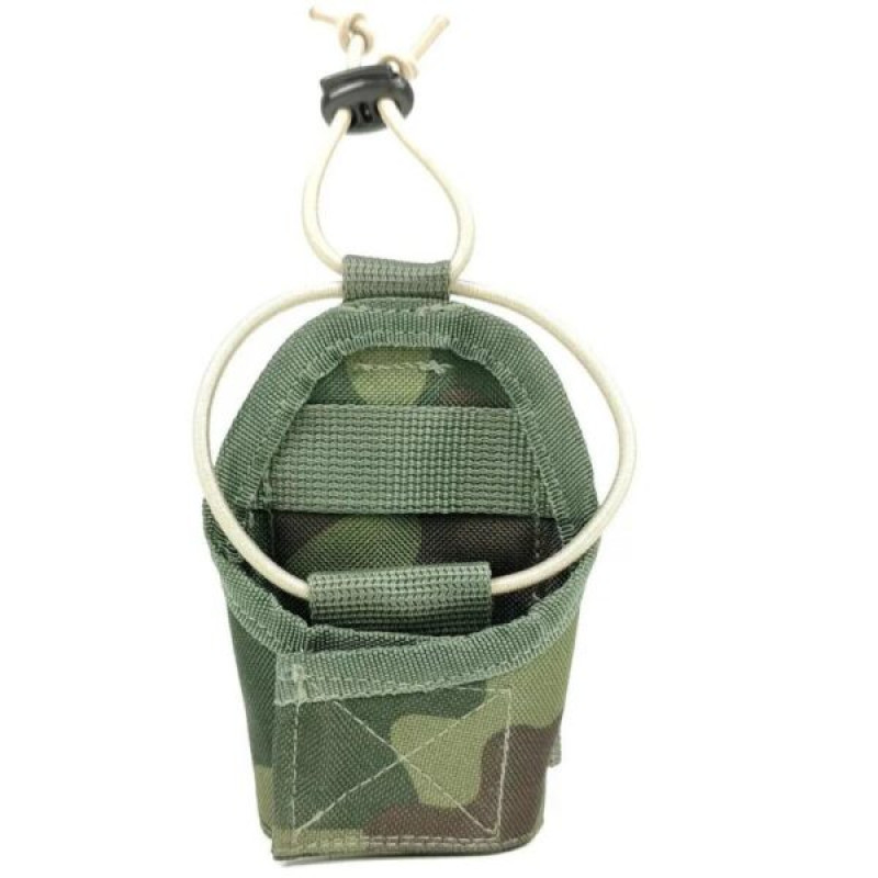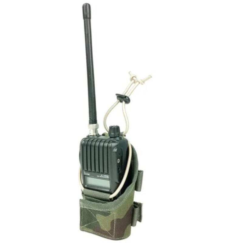 Назначение – для рации любого типа.Крепится на нейлоновую ленту и фиксируется липучкой.Для надежности в итог вшит толстый эластичный жгут на затяжке-стоппере.Сохраняется свободный доступ ко всем клавишам рации, поэтому ею можно пользоваться прямо в итоге.Зафиксировать результат можно на MOLLE, за металлическое полукольцо или на липучку с обратной стороны.Вес – 70 г.Цвет – мультикам.Размер – 13,5х8,5х3,5 см.