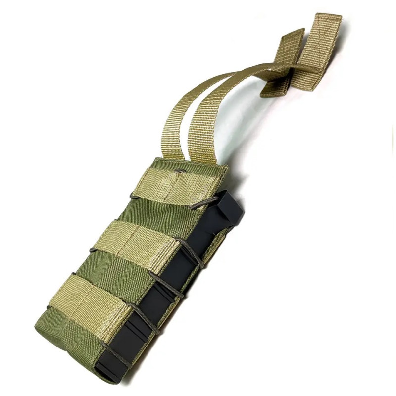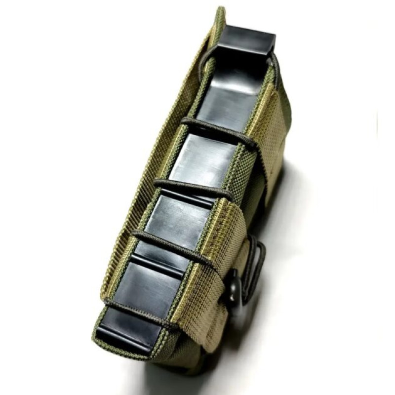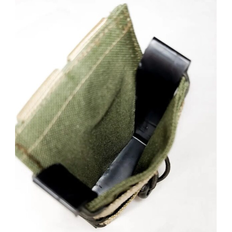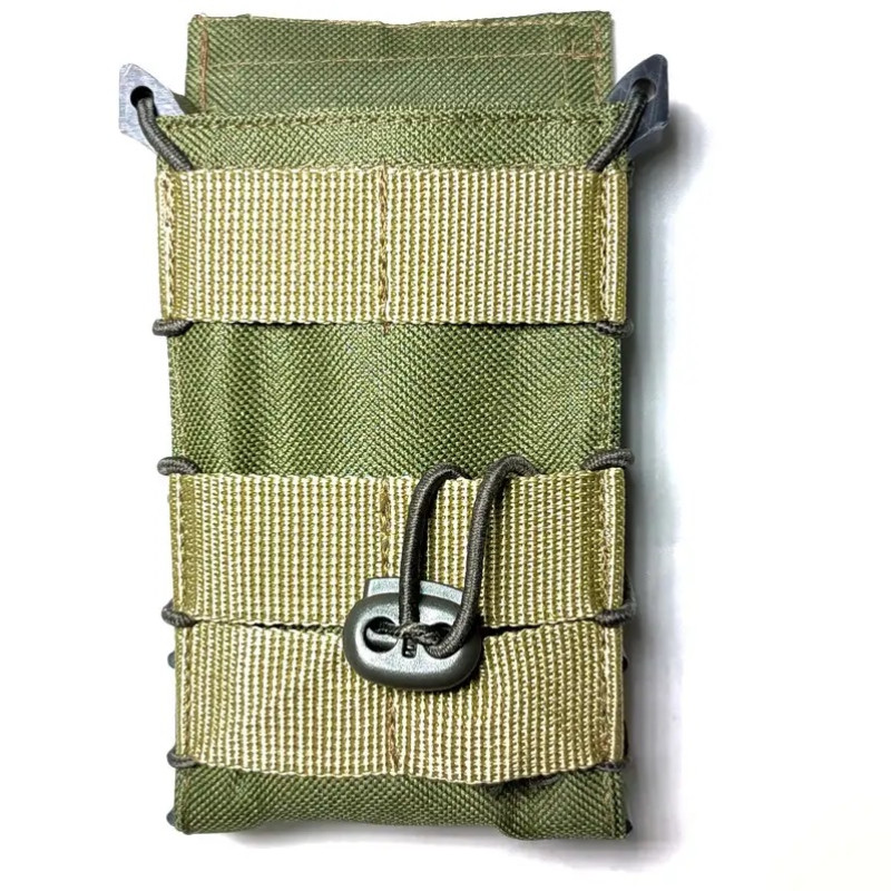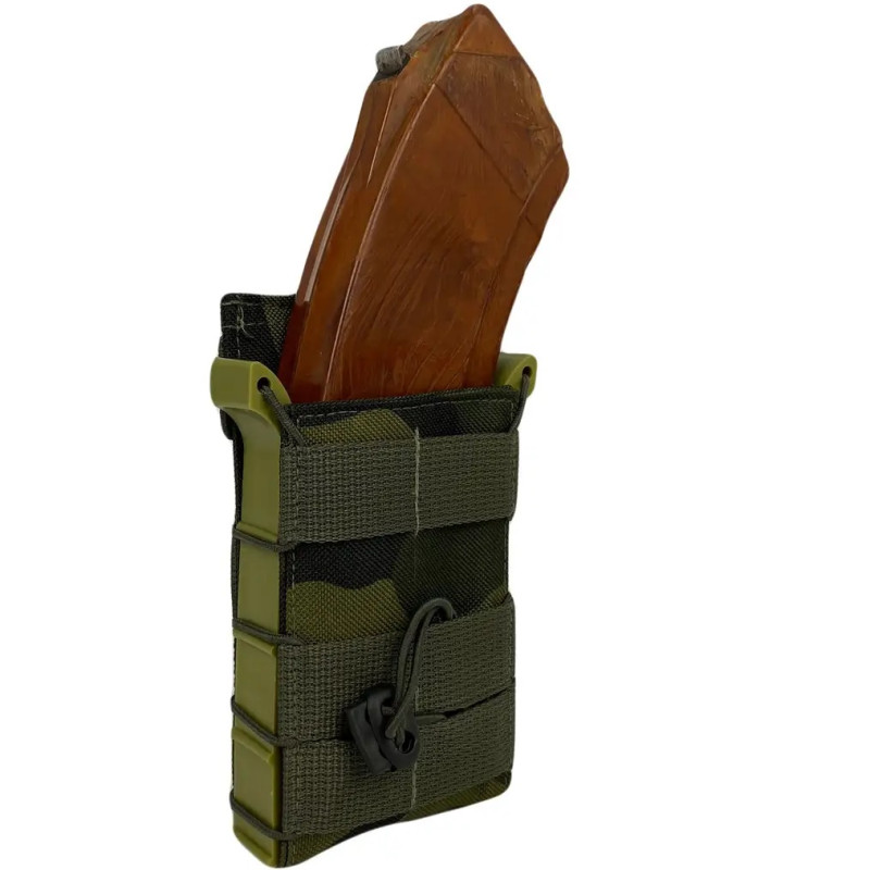 Назначение для хранения магазина для АК и быстрого доступа к нему.Открытый результат для одного магазина АК с пластиковыми панелями.Прочная водонепроницаемая плотная ткань оксфорда. Система MOLLE.С обеих сторон оснащен двумя жесткими пластиковыми панелями, благодаря которым держит форму и обеспечивает простой доступ в магазин.По всей высоте результата использован цельный прорезиненный жгут с фиксатором, благодаря чему магазин надежно обжимается и фиксируется внутри. Передняя стенка оснащена ременной лентой с отсеками для фиксации дополнительных элементов снаряжения.Характеристики:Размер – 14,5х3х8 см.Материал – оксфорд 600, пластик.Цвет – мультикам.Вес – 85 г.Страна-производитель – Украина.