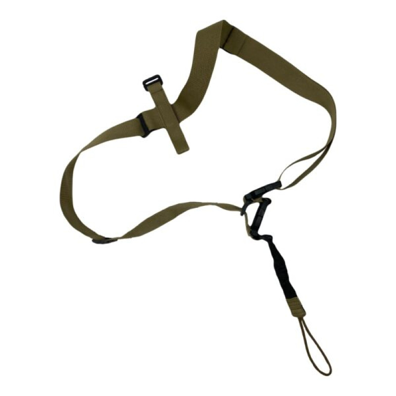 Ремень для АК трехточечный с быстрым сбросом койот• Назначение – удобное и максимально безопасное использование и перенос АК и другого подобного оружия при выполнении военных задач.• Вес – 150 г.• Материал – пластик, ПЭ, полиамидная лента.• Цвет – койот.Трехточечный тактический военный ремень из усиленной ременной ленты шириной 4 см надежно фиксирует оружие. Полиамидные ленты отличаются достаточно высокой прочностью, повышенной износостойкостью, а также устойчивостью к воздействиям внешней среды. Поэтому полиамидные ременные ленты нашли широкое применение при пошиве военной амуниции.С одного конца ремень крепится к оружию тихим бесшумным жгутом, с другой – универсальный держатель на липучке. Бесшумный тихий крепеж обеспечивает скрытность и дополнительную безопасность военных.КонструкцияПрочность на разрыв:• лента – 122 кг;• фастекс – 50 кг.Благодаря регуляции пряжками ремень подходит на любой размер. Большие фастексы позволяют сбросить оружие отдельно или вместе с ремнем даже в полной темноте. Прорезиненная лента возле крепления уменьшает тряску оружия при быстром перемещении по местности.Трехточечный ремень ТТХ является гибридом одно- и двухточечного варианта. Он надевается петлей через голову и на головную руку, как одноточка. Конец петли соединяется с прикладом оружия, а третья точка – с передней частью автомата, как двухточечный ремень. Звучит сложно, но имеет существенные преимущества перед другими видами ремней.Преимущества использованияТрёхточечный ремень ТТХ отлично справляется с фиксацией на теле и удержанием оружия в нужном положении во время движения. С его помощью транспортировка автомата станет легче, чем с двумя другими типами ремней.При закрытом фастексе быстрого сброса вы можете переносить оружие плотно на груди или спине, сохраняя руки свободными, как при использовании двухточечного ремня. В противном случае вы получите возможность свободно переводить АК в боевую готовность из любого положения, как при использовании одноточечного ремня.Трёхточечный ремень ТТХ позволяет легко доставать автомат даже при движении на высокой скорости по полю боя и легко удерживать оружие на теле в любом положении.