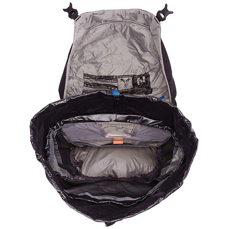 Невелика вага досягається за рахунок тонких, але міцних і стійких до стирання тканин PES 600 з поліуретанової накаткою і MINI CHECK 100HT. Жорсткий Х-образний каркас спинки Aircontact ефективно і рівномірно розподіляє навантаження на тіло. Зовнішня частина конструкції спини складається зі спіненого синтетичного матеріалу з повітряними камерами. Це дозволяє досягати відмінну вентиляцію, перешкоджаючи перегріву тіла, а також забезпечити комфортну і точну посадку рюкзака на спині. Одне велике, основне відділення можна розділити внутрішньою перегородкою, отримавши невелику окремий простір знизу з окремим доступом. Великий зовнішній, еластична кишеня дуже зручний для речей, які завжди хочеться мати під рукою (наприклад, вітровка). Всередині основного відділення є кишеню і петля для фіксації питної системи.