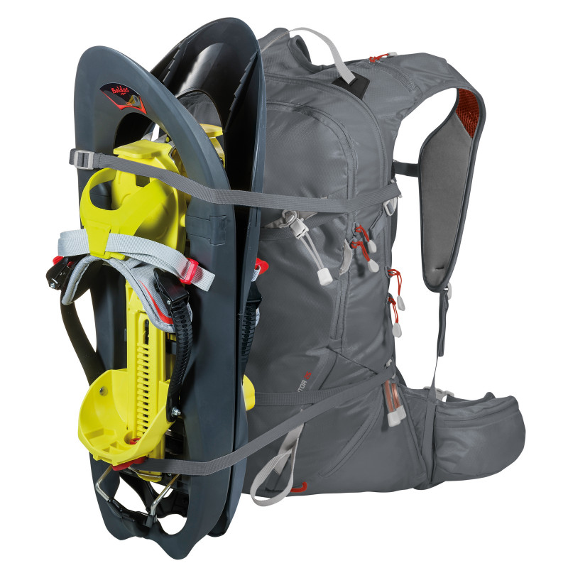 Front Holders - Рюкзак имеет специальную фурнитуру, предназначенную для фронтального крепления лыж на фасаде по диагонали. Одно крепление находится в потайном кармане на верхней шлейке, а в качестве второго используется нижняя стропа для ледоруба и треккинговых палок, либо дополнительные стропы, поставляемые в комплекте. Такая фурнитура позволяет зафиксировать не только лыжи, но и другое объемное снаряжения, как одежда или веревка.