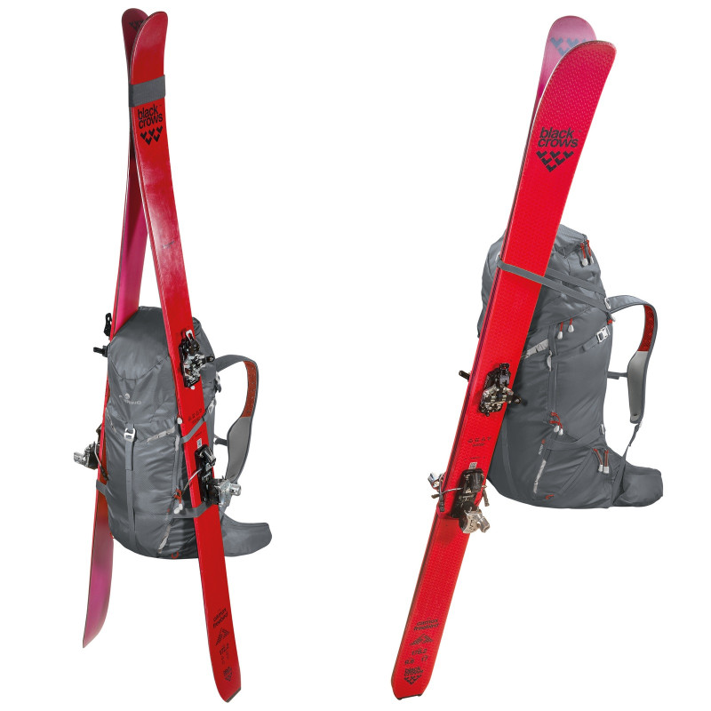Rope Holders - крепления для веревки - это три или пять ремней, предназначенных в первую очередь для фиксации веревки на рюкзаке. Центральная стяжка размещена сверху по центру рюкзака, и по два ремня размещено по бокам рюкзака. Даже если веревка не используется в походе, стяжки могут быть использованы в качестве компрессионных ремней или для крепления экипировки небольшого диаметра. В данном рюкзаке крепления для веревки совмещены с креплениями для лыж и боковыми стяжками. Removable Straps - рюкзак поставляется в комплекте с парой дополнительных строп, оканчивающихся трехщелевыми лямками Duraflex®. Стропы продеваются в специальные боковые петли и систему центральных петель Daisy chain, и используются для крепежа такого снаряжения, как горные или беговые лыжи, снегоступы и др. Стропы также могут быть использованы в комбинации с боковыми стяжками и верхней стяжкой рюкзака. Side Holders - двухточечная боковая система фиксации лыж. Фиксатор состоит из двух пар боковых компрессионных стяжек с лямками для регулировки длины. Данная система крепления совмещена с креплениями для веревки, а также с боковыми компрессионными стяжками и позволяет пристегивать не только лыжи, но и другую необходимую экипировку. Front Holders - Форма рюкзака специально адаптирована для использования дополнительных строп в качестве фронтальных креплений, которые позволяют зафиксировать более объемное снаряжение, такое как горные лыжи, одежда, веревка, или зафиксировать другую необходимую экипировку.