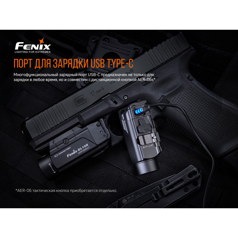 Ліхтар моделі Fenix GL19R являє собою потужний акумуляторний прилад для тактичних цілей. Він був розроблений спеціально для того, щоб підвищувати видимість і можливості прицілювання при стрільбі. GL19R досить невеликий за габаритами і практично неруйнівний, дає інтенсивне біле освітлення до 1200 люменів. Відстань дії променя досягає 210 метрів. Його можна швидко зафіксувати як на універсальній направляючій, так і на планці Пікатінні за допомогою запатентованого важеля QD. Двосторонні задні кнопки гарантують Миттєве управління одним пальцем короткочасного або постійного включення. Режим стробоскопа можна запустити тривалим натисканням при включеному світлі, щоб допомогти вам контролювати ситуацію.