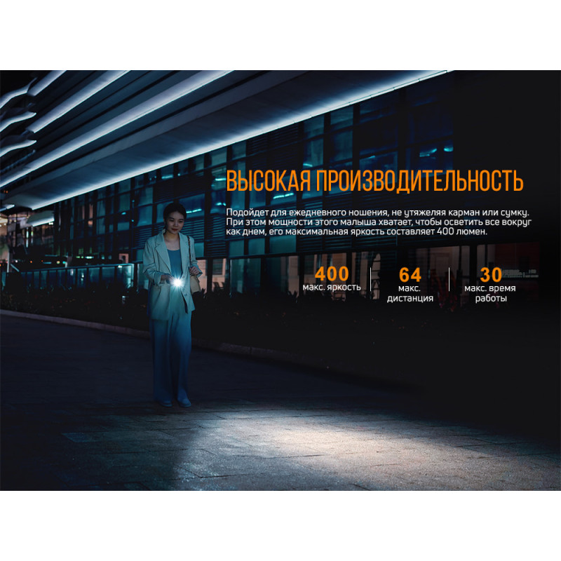 * Необхідно згадати, що наведені параметри роботи моделі були отримані під час здійснення лабораторних дослідів. Для цього використовували вбудований акумулятор Li-polymer 320 маг, температура повітря досягала 21±3°C і вологість 50% - 80%. Реальні показники роботи ліхтаря можуть бути іншими в залежності від того, які умови навколишнього середовища і елементи живлення.