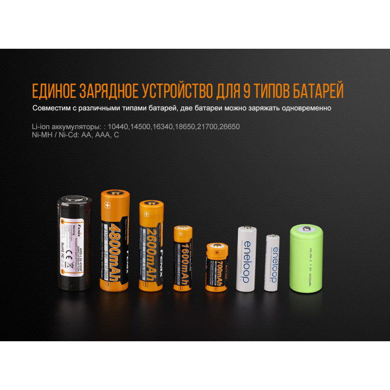 Fenix ARE-A4 являє собою дійсно універсальний зарядний пристрій, який може працювати практично де завгодно і майже з будь-якими видами акумуляторів. Для нього допустима установка елементів живлення 9 різних форматів. Це 6 різновидів літій-іонних елементів живлення (18650, 14500, 26650, 10440, 21700, 16340) і ще 3 типу нікель-кадмієвих або нікель-металгідридних (АА, ААА, С). Прямо з коробки пристрій готовий до підключення до центральної електромережі. А щоб використовувати його в автомобілі, потрібно придбати окремий кабель. При його наявності, Fenix ARE-A4 підходить для будь-яких автоподорожей. До того ж, вага даної моделі дорівнює всього 265 м, що робить її відмінним варіантом спорядження для мандрівників.