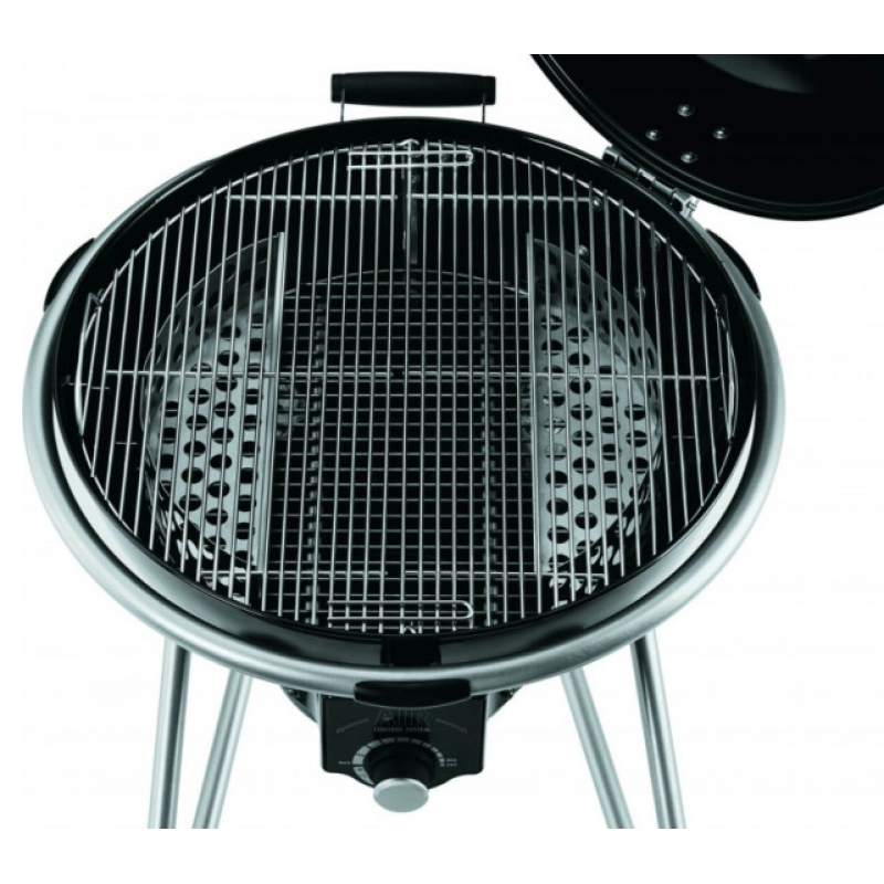Завдяки інноваційній запатентованій системі управління подачею повітря «AIR» ви легко і точно відрегулюєте робочу температуру всередині гриля. Практичний шарнір кришки з кутом 45 °. Вбудований в кришку термометр для оптимального контролю температури.