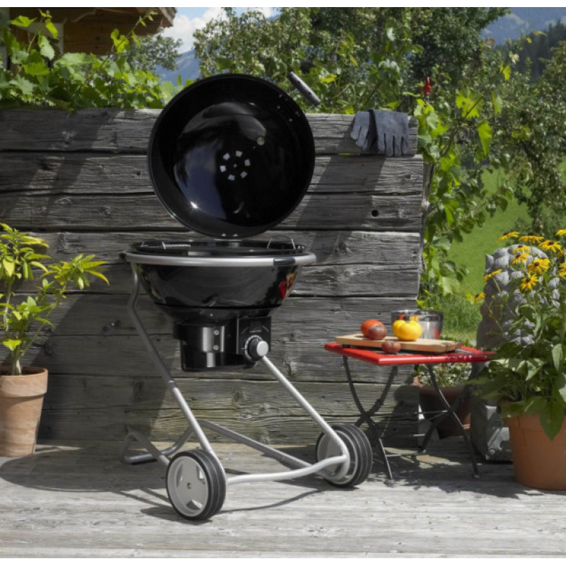 Великі колеса (Діаметр 20 см) з широким профілем для зручності переміщення гриля. Проста збірка - гриль поставляється частково зібраним. Roеsle F60 AIR виконаний з високоякісних матеріалів: жароміцний і стійкий до корозії корпус гриля покритий порцелянової емаллю чорного кольору.