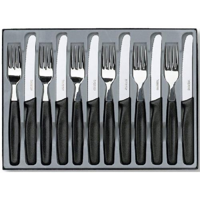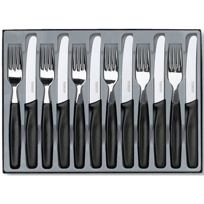 Набір столових приладів Table Set з 12 предметів з чорною ручкою (6 ножів з лезом 11 см (серрейтор) і 6 вилок) Victorinox 5.1333.12 Швейцарія- Колекції: Кухонні ножі