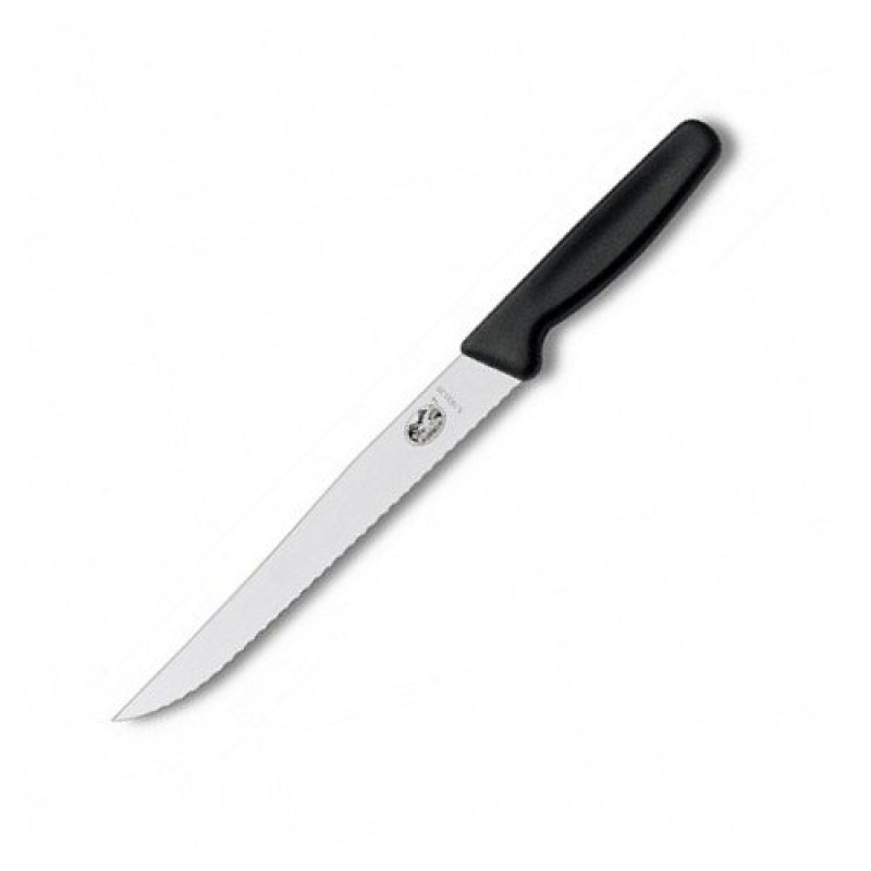 Ергономічна рукоятка з поліпропілену зручно лежить в руці і не вислизає навіть при роботі з жирними продуктами. Ніж відповідає швейцарському якості і залишається гострим протягом тривалого часу. Поповніть свій кухонний арсенал і насолоджуйтеся отриманими результатами разом з Victorinox.