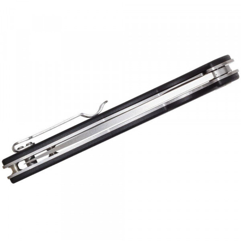 Лінії клинка плавно переходять в ергономічну ручку з накладками з склотекстоліти G-10 зі спеціальними дрібними насічками. Це дозволяє уникнути зісковзування ножа під час роботи навіть мокрими руками. Спеціальна подпальцевая виїмка забезпечує більш впевнений хват. Клинок приводиться в робоче положення за допомогою фліппера і фіксується замком Liner Lock.