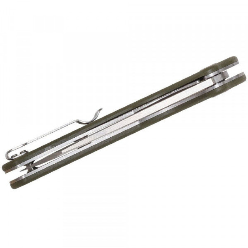 Накладки приховують замок liner lock, який надійно фіксує клинок, запобігаючи його випадкове закривання. Крім того, для зручного щоденного носіння модель оснащена двостороннім кліпсою і отвором для кріплення темляка.