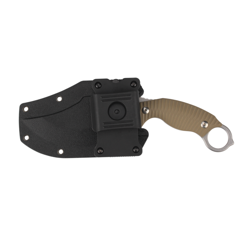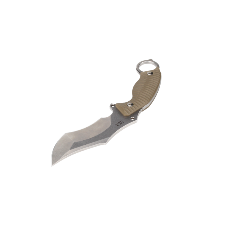 Рукоять виготовлена з склотекстоліти G10, який являє собою суміш склотканини і епоксидних смол. Це досить міцний і стійкий до пошкоджень матеріал, добре переносить вологу, відмінно піддається фарбуванню. До того ж, G10 стійкий до впливів високих температур. Рукоять з таким матеріалом у складі буде мати довгий термін служби і добре протистояти впливу різних факторів.